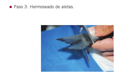 dorsal desde la cola hasta la cabeza, cortar el resto de aletas y verificar que